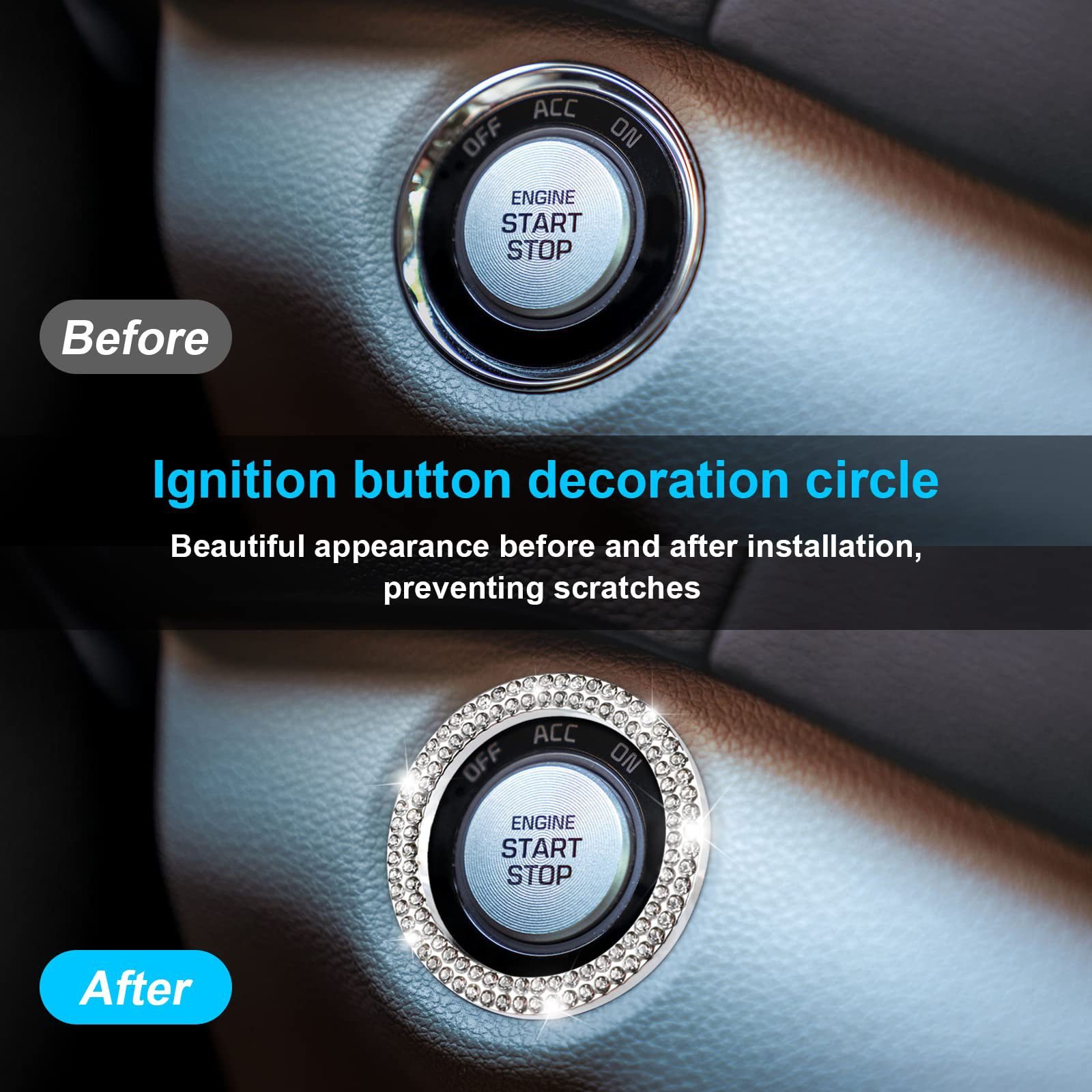 【High quality】Push to start button decoration ring made of high quality zinc alloy, which is sturdy and durable, and with crystals on it, making the product dazzling and beautiful for Car Glam Interior Accessories and Unique Women Gift.
