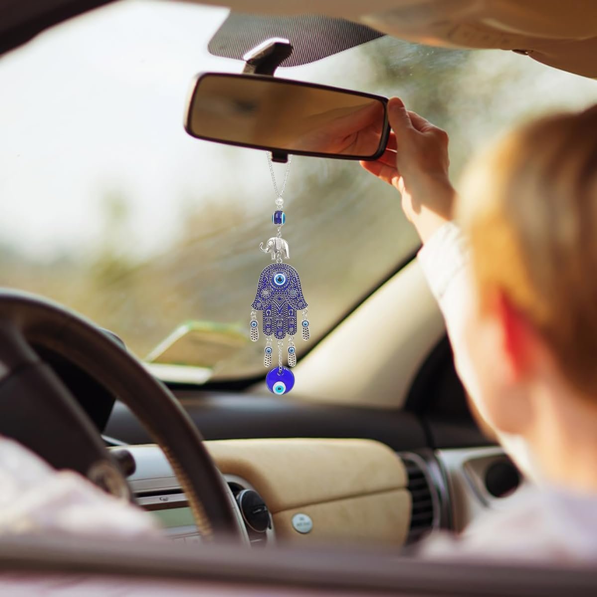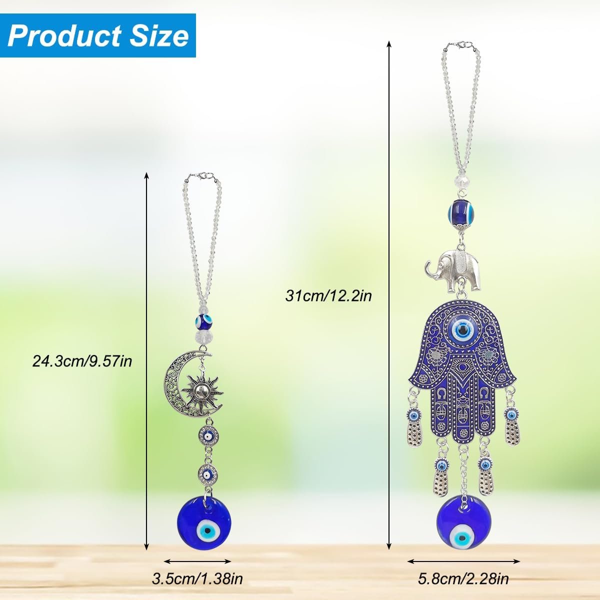 Suitable Length:The length of the evil eye pendant is approximately 30 cm / 11.8 inches and 24 cm / 9.4 inches, the right length will not take up too much storage space and will not block your view while driving.