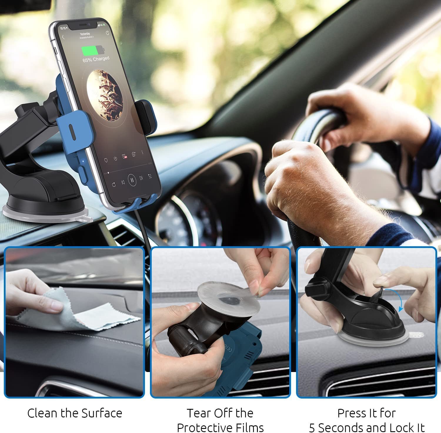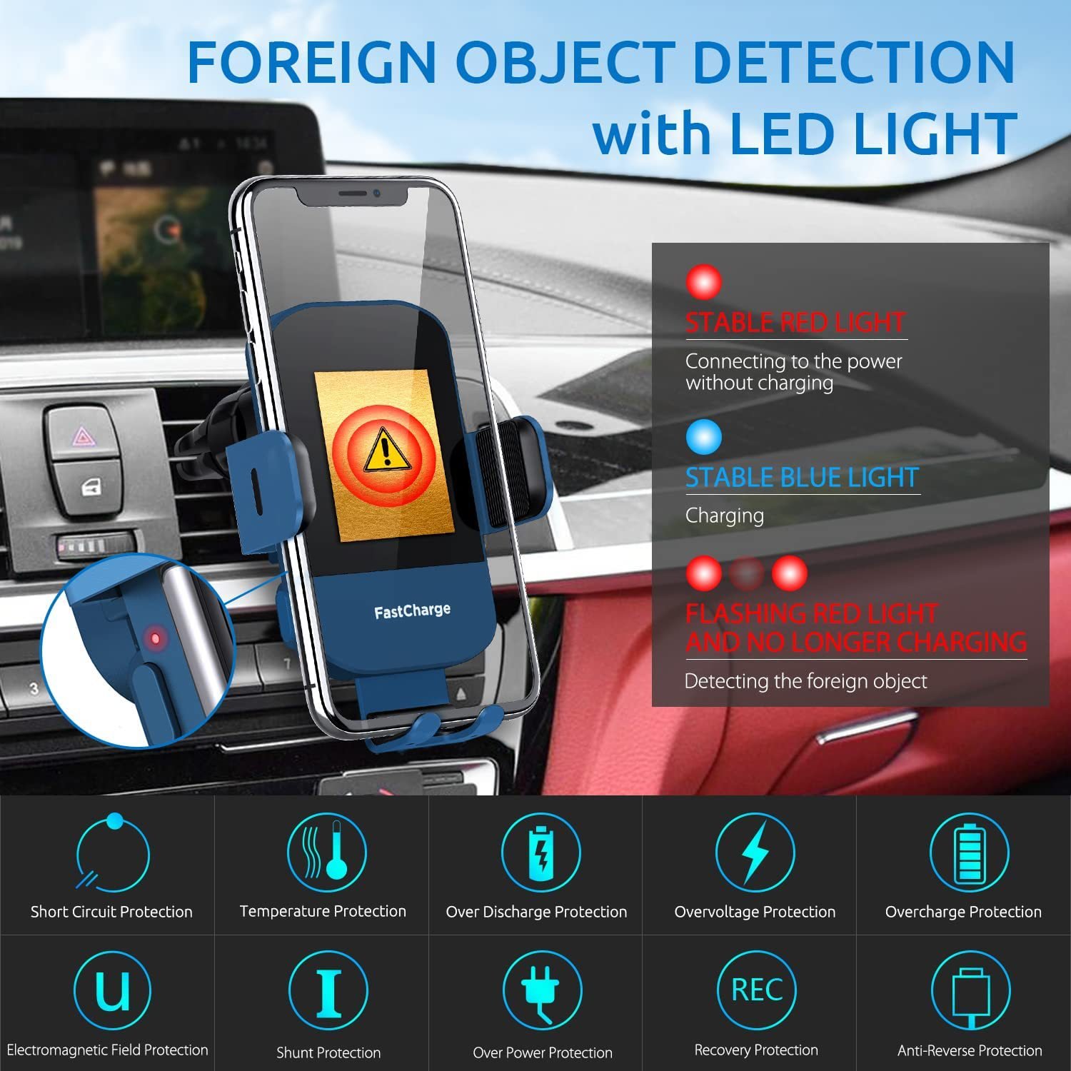 Wireless Car Charger, 15W Fast Charging Auto Clamping Car Charger Phone Mount Phone Holder